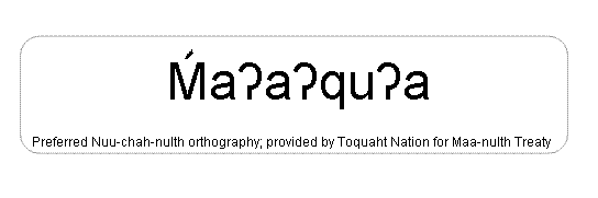 Macoah (Former First Nation Village) adopted 1 April 2011, per the provisions of the Maa-nulth Treaty.