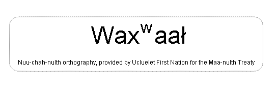 Waxwaal (beach) adopted 1 April 2011, per the provisions of the Maa-nulth Treaty.
