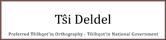 Some spell the name "Tŝi-deldel" or "Tŝideldel" and both acre considered acceptable. "Tŝi Del Del" is considered an incorrect spelling because "del" means 'blood' in Tŝilhqot’in, whereas "deldel" means 'red' (advice from the Tsilhqot'in National Government, 2018).